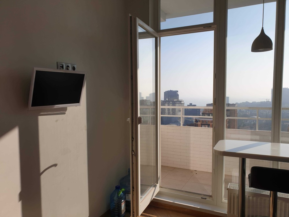 Перша здача. Пропонується в оренду сучасна квартира в новобудові біля м. Житомирська (Берестейський пр-т, 131а). В будинку є генератор (завжди є опалення, вода та працює ліфт). Квартира укомплектована всіма необхідними меблями та технікою. У кімнаті - двоспальне ліжко, розкладний диван, письмовий стіл, кондиціонер, телевізор, велика шафа для одягу. Санвузол суміщений, душова кабінка. Тихий двір, велика парковка. До метро Житомирська - 10 хвилин пішки. Вартість 16000 грн. Умови оренди: оплата за два місяці та послуги рієлтора (50%). комісія: 50%