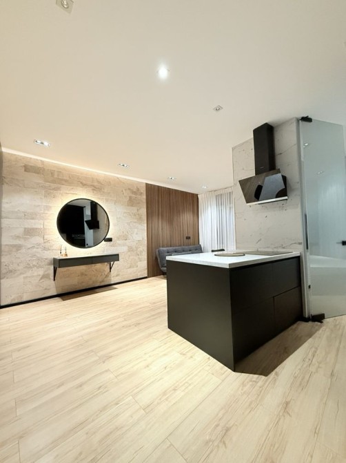 Укомплектована полностью для комфортного проживания :WiFi, Smart TV, фен , утюг , холодильник , кондиционер зима лето, индукционная плита , микроволновая печь , духовка , стиральная машина , душевая кабина,