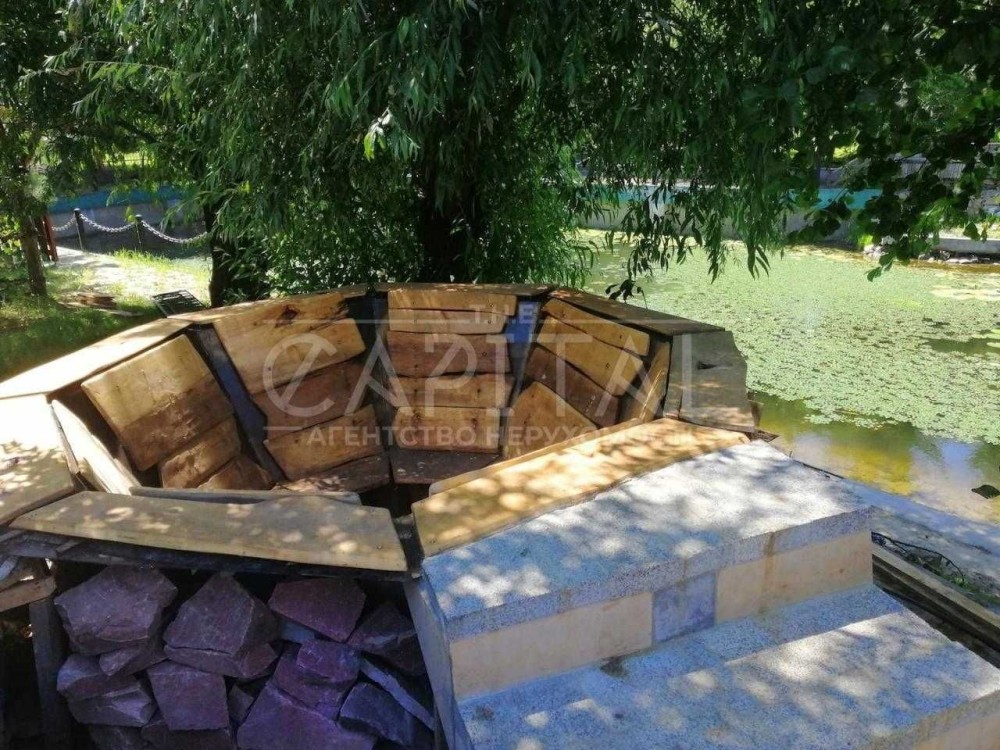 Затишна ділянка з альтанкою, власною пристаналлю, фруктовим садом та окремим будинком для обслуговуючого персоналу.