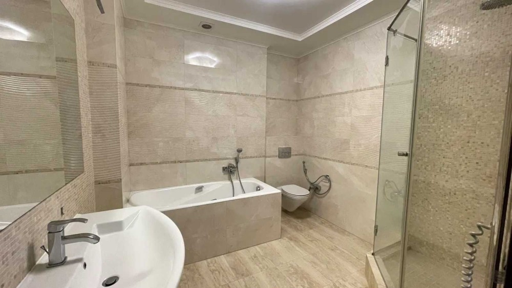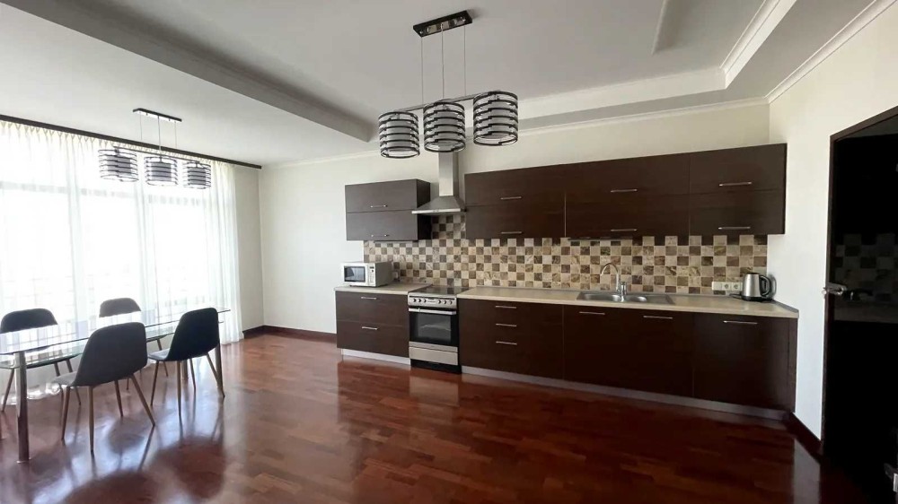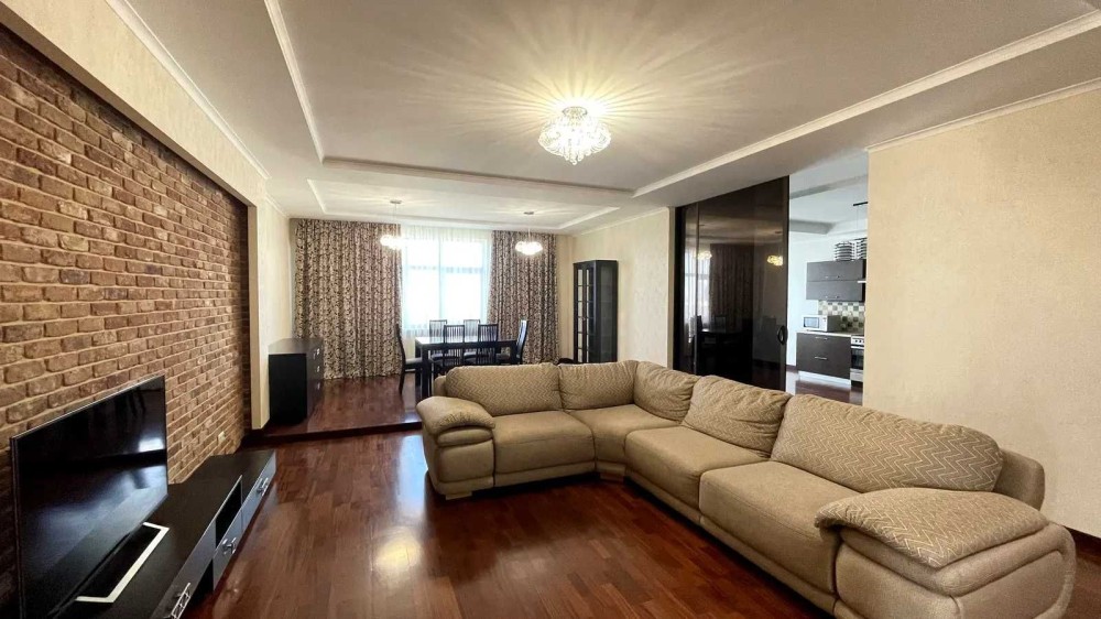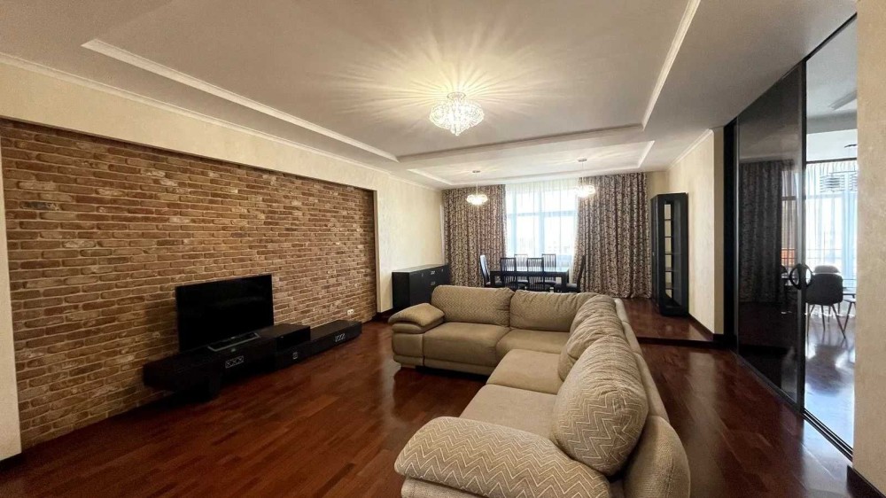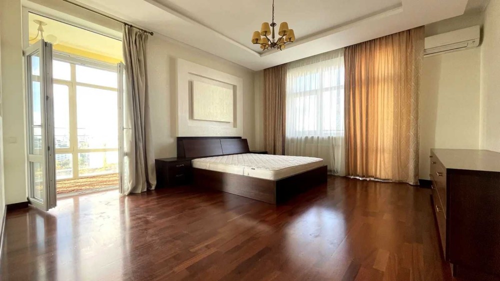 Просторная 3-х комнатная квартира в новом доме площадью 140 кв.м. расположена на 14 этаже. В квартире: кухня студио с зоной кухни и столовой, 2 спальни, 2 с/у, гардеробная комната.Выполнен современный евро ремонт, новая современная мебель, качественные материалы и сантехника.Все квартиры на этаже отремонтированы, тихие соседи. Есть парковка.