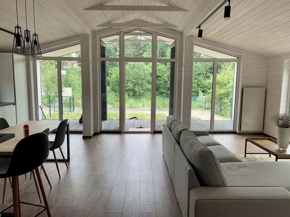 Здаються 2 нових будинка, що розташовані поруч у Лісниках з панорамним краєвидом у стилі Скандинавський мінімалзім. У кожному будинку 2 спальні, санвузол, велика вітальня и кухня, велика тераса. Генератор 5 КВт та камін для обогріву. Уся побутова техніка та меблі нові. Здається уперше.