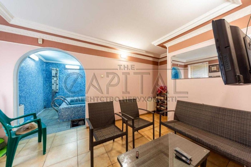 На ділянці висаджено дванадцятирічні туї і пальми, розташовується відкритий басейн з підігрівом, окремо стоїть кам'яна шашлична для великої компанії, гостьовий будинок із сауною, більярдом, ігровою зоною і кімнатою відпочинку.