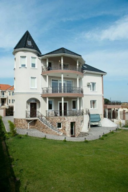 В престижном и живописном районе Одессы на охраняемой территории, Совиньон-2 у моря СДАЕТСЯ 4-х уровневый дом общ.пл.435 кв.м. 10 сот. земли, участок огорожен забором. Внутренний дворик выложен тротуарной плиткой, зеленные газоны, а также порадует глаз - большое количество разнообразных растений вокруг и альпийская горка. На заднем дворе участка расположен большой открытый бассейн с противотоком. Гараж на 2 машины, Над гаражом благоустроенная комната для охраны с центральным пультом управления камер видео наблюдения придомовой территории.На 1-ом уровне гардеробная -11.5м, санузел-4м, кухня-столовая -20м., просторная гостиная с выходом на открытую террасу-42м. На полу испанская плитка, пол с подогревом. Стены крашенные, подвесные многоуровневые потолки. Винтовая лестница ведет в цокольный этаж, где расположен большой игровой зал, теннис бильярд, роскошный бассейн с подогревом воды, финская сауна и комната отдыха. А гидравлический лифт облегчает передвижение по дому, на любой этаж. На 2-ом уровне, хозяйская спальня-26.5 м и детская комната-13.м. детская-17м , холл23м , 2 санузла на этаже. На 3-ем уровне гостевой этаж со своей кухней и стиральной машиной. комната-15м с выходом на террасу, откуда открывается красивый вид на море спальня – 17м, Детская -13м. Украшением этого этажа является башня обозрения. На каждом этаже есть санузел, оборудованный душевой кабиной. В доме есть проводной интернет ,на каждом этаже установлен компьютер, а также WI-FI. кабельное ТВ, видео домофон, сейф для хранения ценных вещей. Дом меблирован и оснащен разной практичной, полезной бытовой техникой