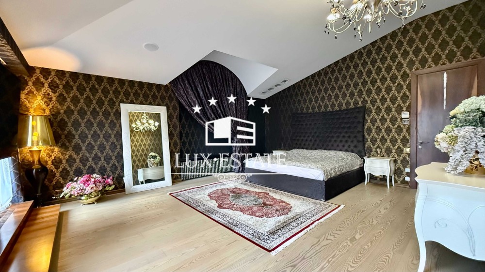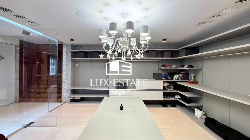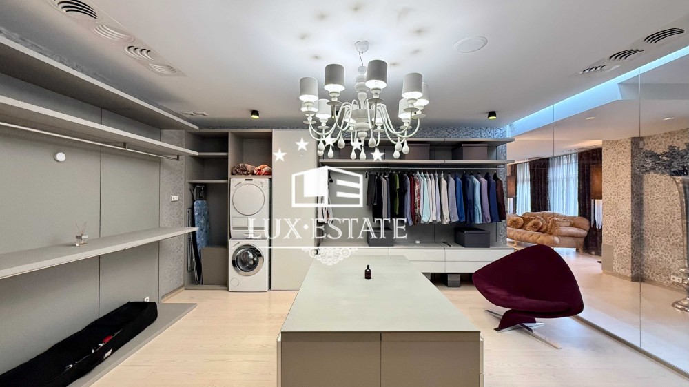 Вторая зона - хозяйская спальня с выходом на террасу и своим с/у, две гардеробных комнаты (одна с постирочным блоком, вторая - со своим с/у).