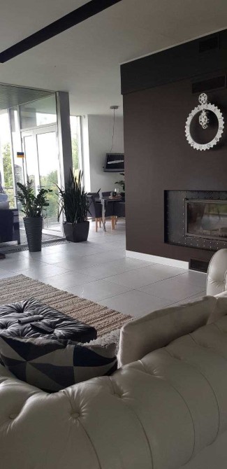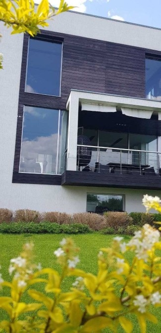 Высокое ограждение создает приватность и тишину. Автоматические распашные ворота расположены напротив заезда в гараж (на три машины) . Из гараж попадаем в шикарную стильную гостиную с камином , террасой . Также на первом этаже расположены входная группа, кухня, санузел, кабинет и лестница на второй этаж. По удобной лестнице поднимаемся на второй этаж, Три отдельные спальни, два санузла и 22 метра гардеробная комната. Из спален открывается великолепный вид, на зеленый участок и перспектива поселка, Окна в пол, добавляют света. Цокольный этаж= зона релакса. Мини спортзал, сауна, санузел, техническая комната и два хозяйственные комнаты.