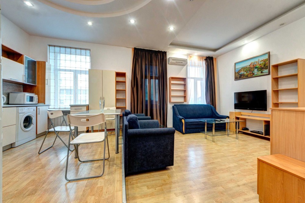 Апартаменты расположены в центре Киева по улице Крещатик 23. Метро Крещатик находиться в 5 минутах ходьбы.