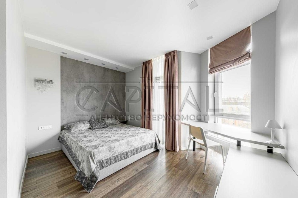 - спальня з балконом, продуманою гардеробною кімнатою, зручним двоспальним ліжком та вбудованим робочим простором для роботи,