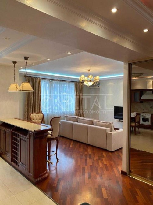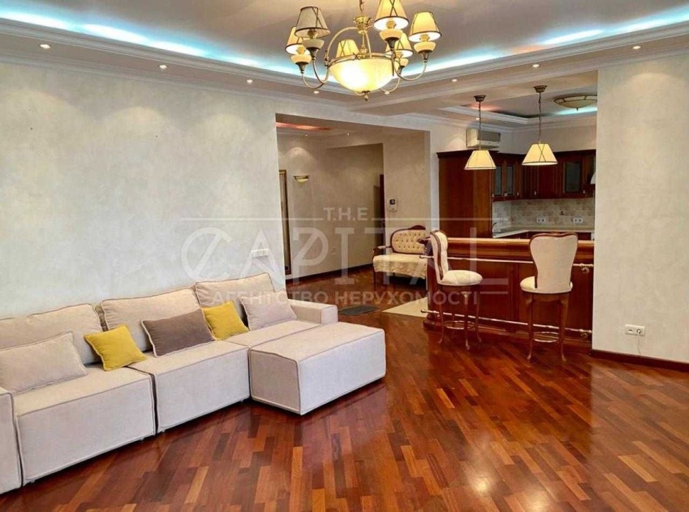 В долгосрочную аренду 3-х комнатную видовую квартиру 135 кв.м. в доме премиум - класса в Печерском районе, полностью укомплектована всей необходимой мебелью со встроенными высококачественными шкафами, гардеробными и техникой. Кухня-гостиная объединённая в единое пространство, 2 отдельных комнаты, 2 санузла, постирочная комната. Натуральный пол с подогревом, часть комнат имеют прекрасный вид на Киев, часть выходят в уютный, тихий двор. Установлен бойлер, счётчики тепла, воды, света. Батареи с регулировкой тепла.