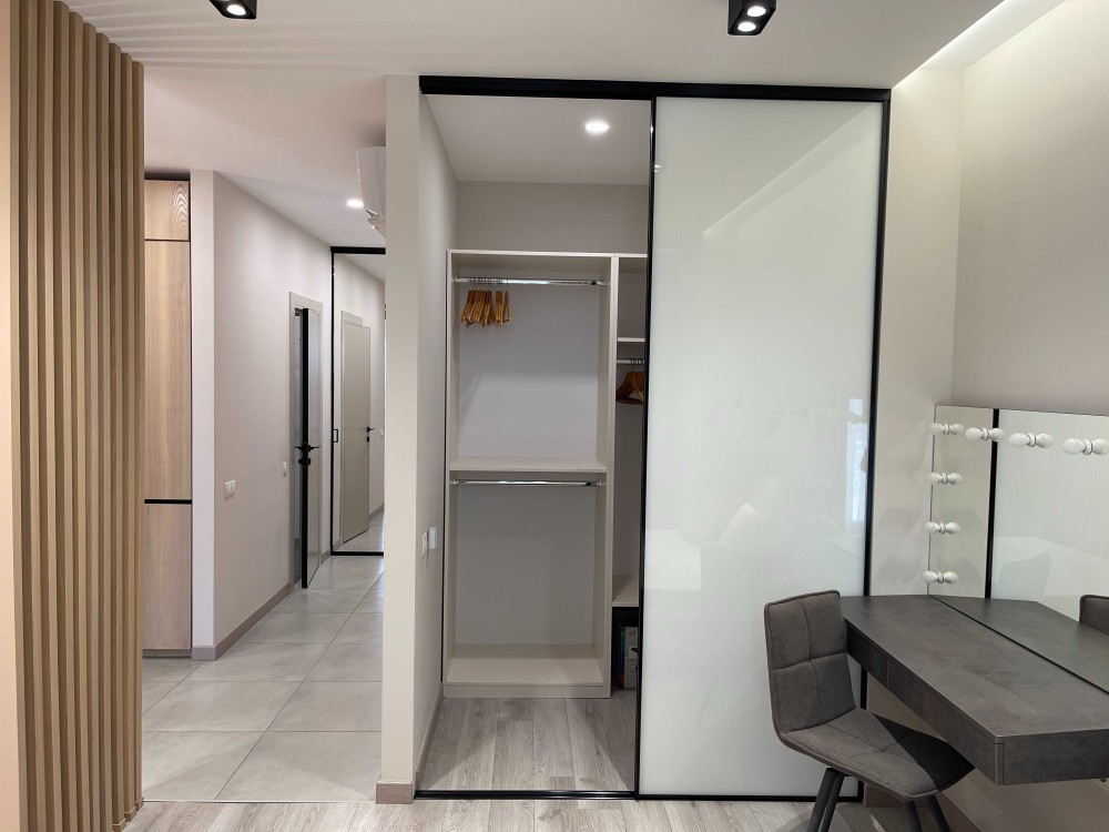 Студия + спальня с гардеробной.