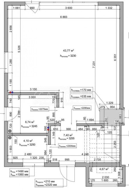 • санвузол з душем, 6 м²