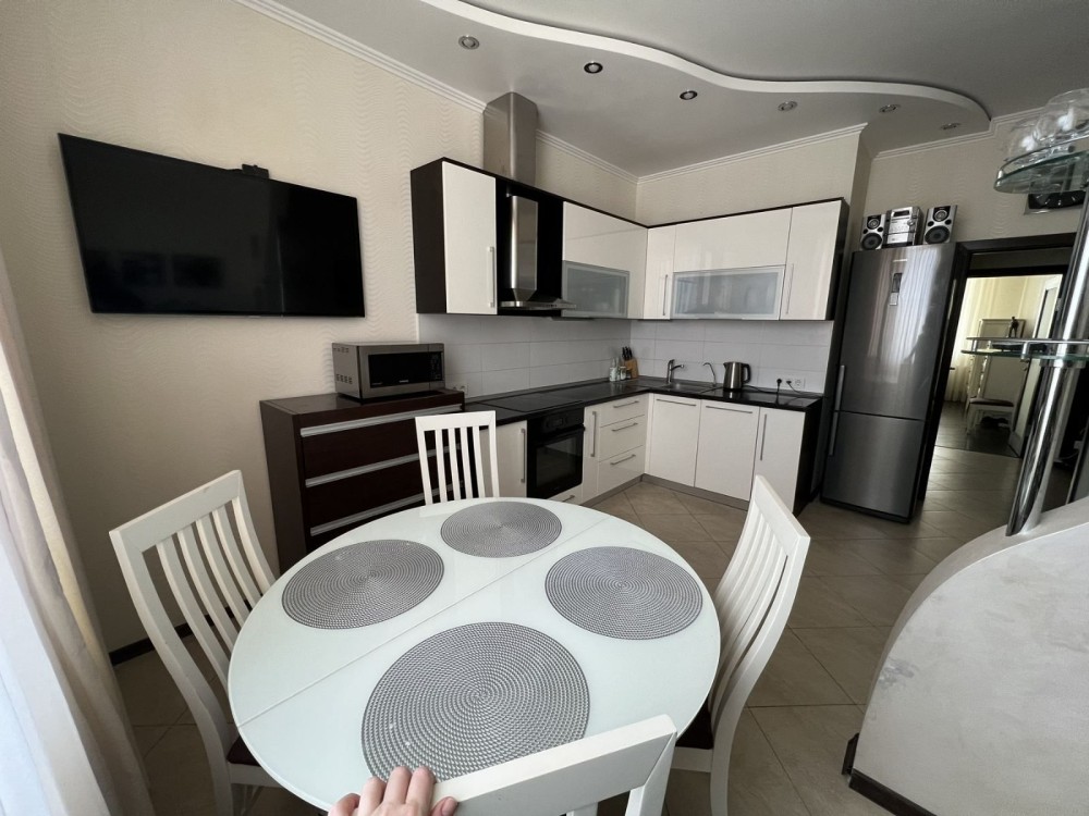 Код: 2665. ДОЛГОСРОЧНАЯ АРЕНДА (без выселения на летний период). Четырехкомнатный пентхаус в Ж/К «Белый дом», проспект Глушко, 32, 23-24/24 эт. дома, общая площадь 115 кв. м. Евроремонт, кухня-студия и три спальни, 2 санузла, панорамные окна. Есть все необходимое для комфортного проживания, мебель и бытовая техника: холодильник, стиральная машина, духовой шкаф, варочная панель, кондиционер. В доме есть: лифт, грузовой лифт, гостевой паркинг. В доме есть своя котельная, генератор, в парадной консьерж, видеонаблюдение. Рядом с домом находится продовольственные магазины, аптеки, банки, банкоматы, кафе и рестораны. Удобная транспортная развязка. Квартира сдается без животных, дети от 6-ти лет. Аренда от 6-ти месяцев и более. Стоимость может варьироваться в зависимости от срока аренды. Перед просмотром уточните наличие и важные для вас детали по VIBER, WHATSAPP или TELEGRAM, указав «КОД» из объявления. КОМИССИЯ ЗА УСЛУГИ РИЭЛТОРА - 50% от месячной аренды (разовая оплата при оформлении договора).