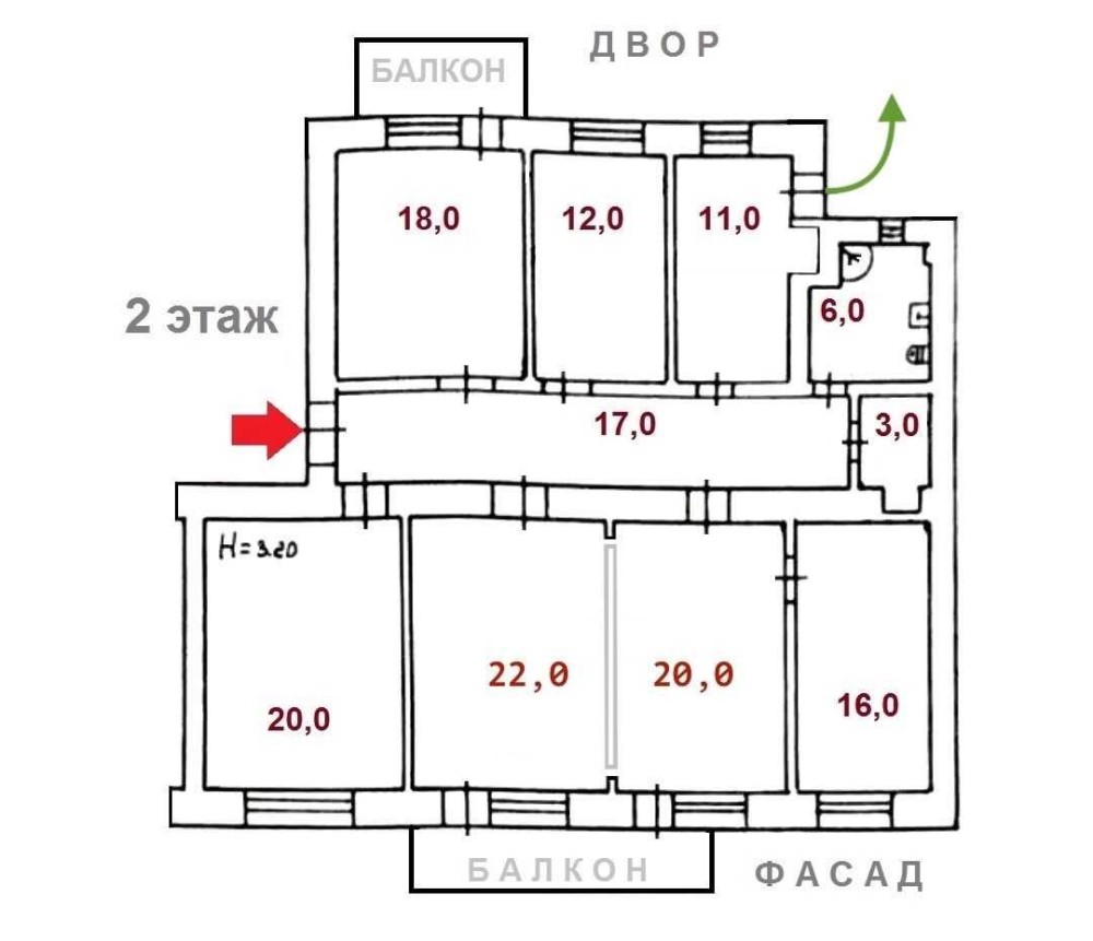 Два балкона (фасад+двор)