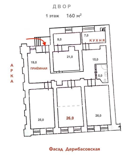 1 этаж, свой вход с арки.