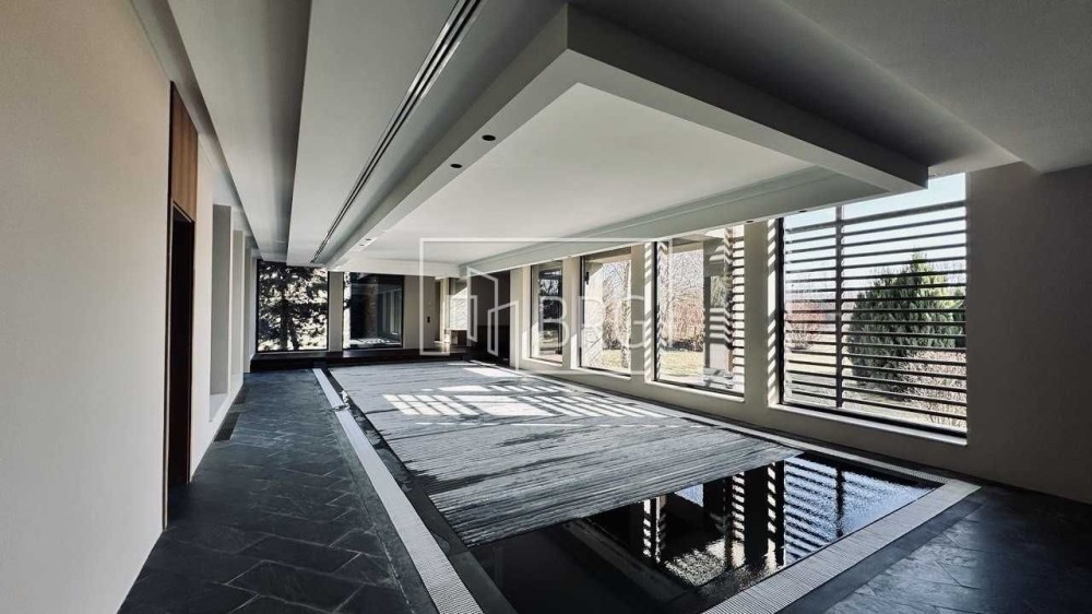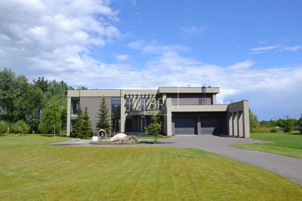 Описание дома: 1-й этаж: гостиная с камином, столовая, кухня, с/у, бассейн 15м, сауна, гараж на 3 автомобиля;