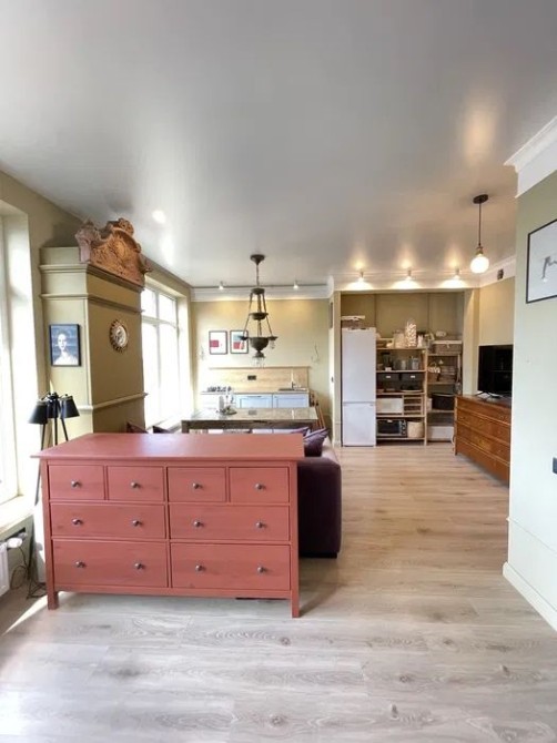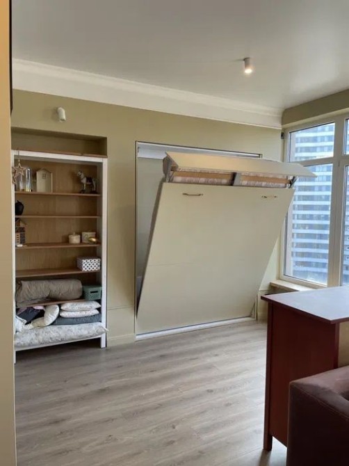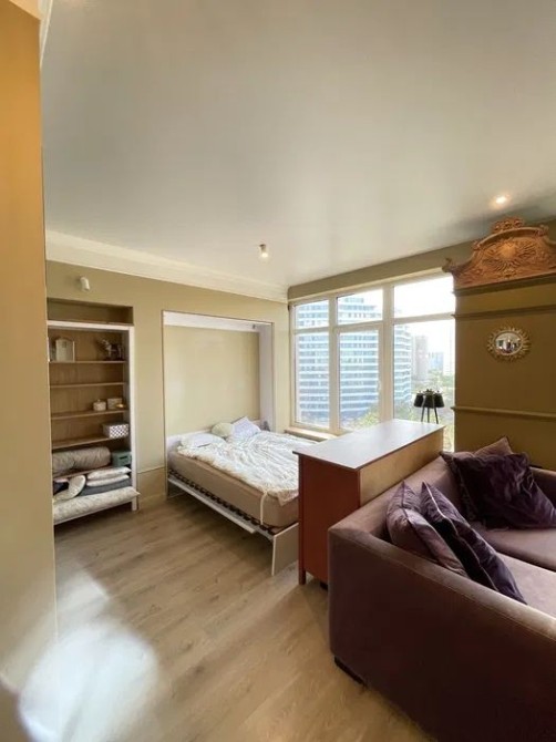Планировка: студия с выделенной спальной зоной + гардеробная