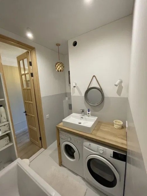 Со всей необходимой мебелью и техникой, включая посудомоечную и сушильную машину
