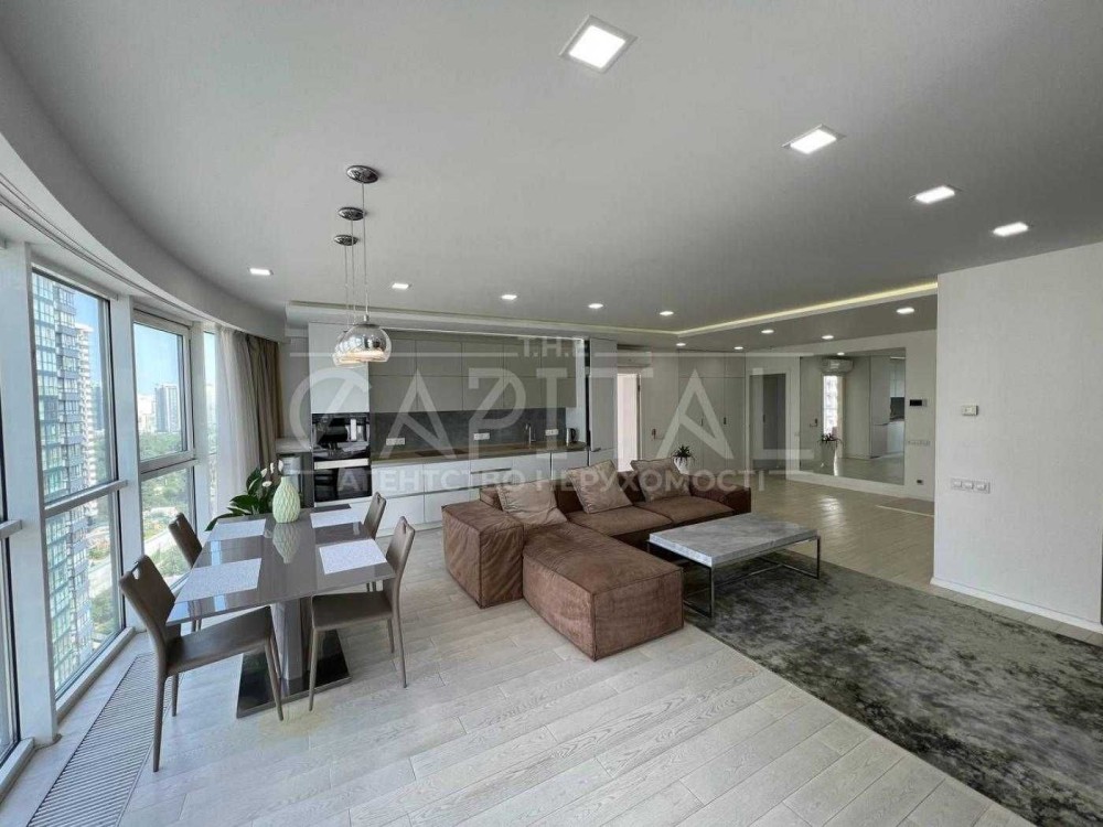 • вітальня-кухня з видом на Дніпро та міст