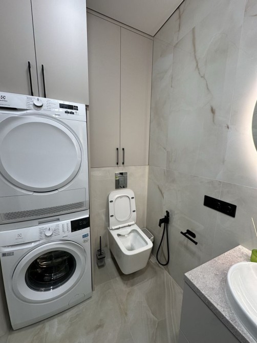 Укомплектована полностью для комфортного проживания :WiFi, Smart TV, фен , утюг , холодильник , кондиционер зима лето, индукционная плита , микроволновая печь , духовка , стиральная машина , душевая кабина , посудомойка , сушильная машина