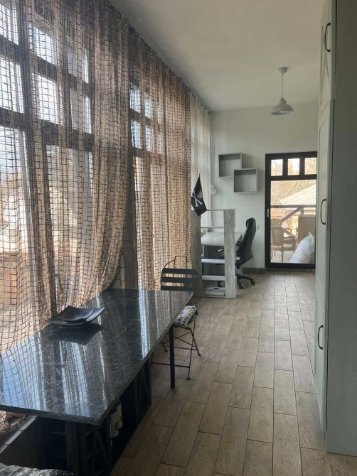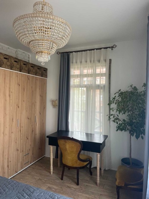Оренда двохкімнатної квартири з дизайнерським ремонтом в тихому районі міста Києва, вул. Архітекторська, неподалік Соломянська площа, проспект Валерія Лобановського. Приватна, закрита територія, затишний дворик. Будинок двохповерховий, квартира на другому поверсі. Загальна площа - 55 м2, спальня - 14 м2, вітальня - 20 м2, облаштована тераса з меблями - 9 м2, кухня-столова - 17 м2. Укомплектована всіма необбхідними меблями та побутовою технікою, плита, духовка, мікрохвильовка, посудомийна машина, пральна машина, каво машина, кондиціонер, телевізор. Опалення - газовий котел. Встановлено безперебійну систему живлення Deye. У дворі є можливість користуватися альтанкою та мангалом. Дуже затишна, повністю автономна квартира на випадок відключення електроенергії. Розглядаємо орендарів з дітками та домашніми улюбленцями. Вартість оренди - 32000 грн/міс + коммунальні. Пропозиція без комісії для орендарів.