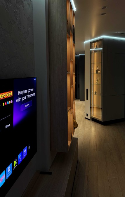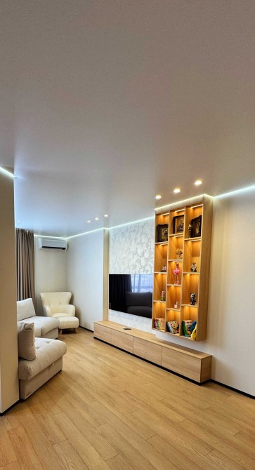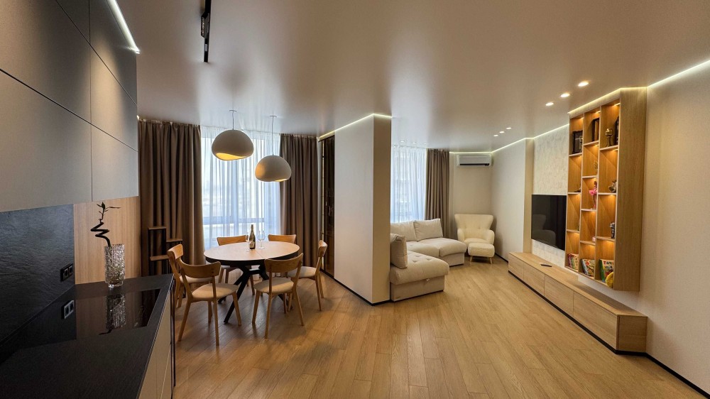 Інтер'єр виконаний у сучасному стилі, продуманий до найдрібніших деталей для максимального комфорту.