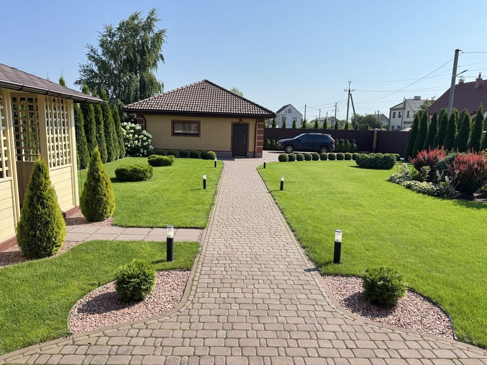 Ландшафтний дизайн ділянки, догляд за яким входить у вартість проживання.