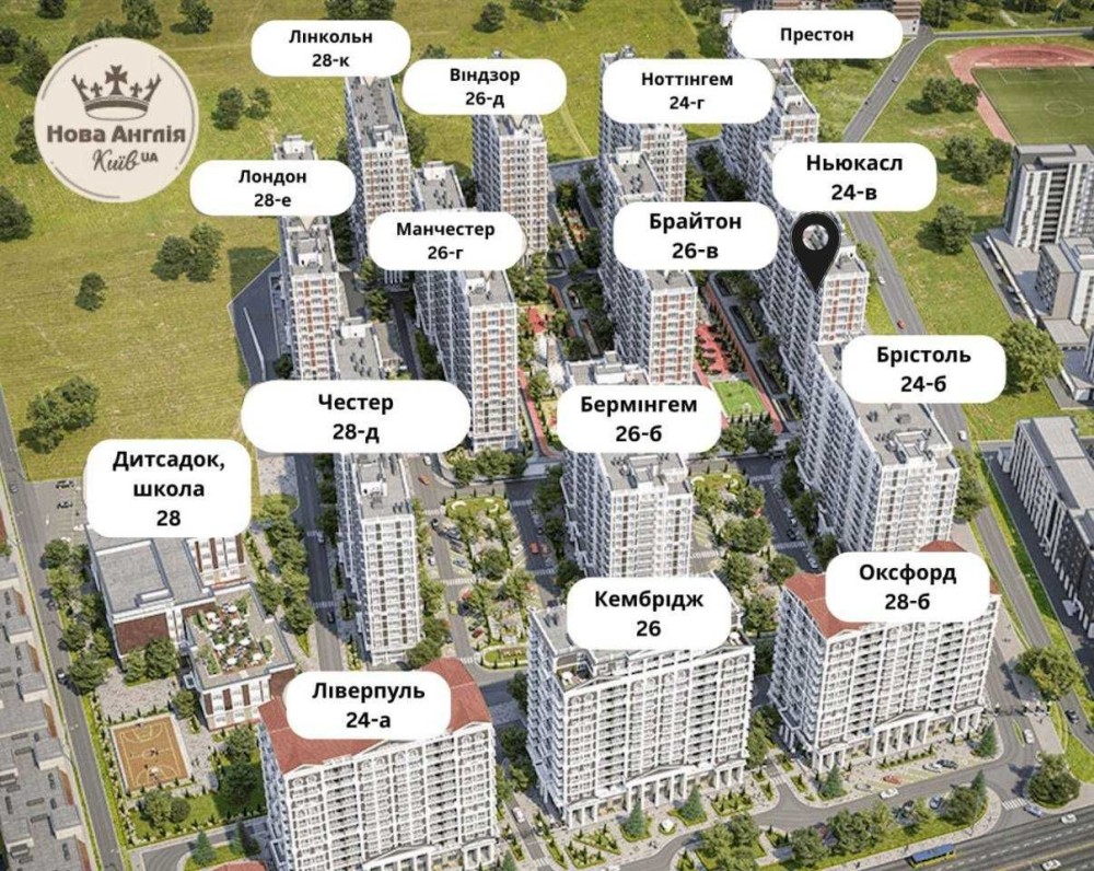 ЖК "Нова Англія" це надзвичайне місто в місті, підземний та наземний паркінг, на території комплексу школа "Європейський колегіум", дитячий садок, якісні дитячі майданчики, дитячі гуртки, спортивний майданчик, тенісний корт, міні-футбол, салони краси, клініки, сімейний врач, майданчик для собак, кафе, ресторани, продуктові маркети. Метро "Васильківська" 10-15 хвилин пішки