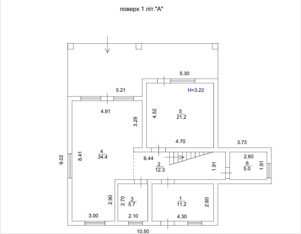 На першому поверсі розташована велика кухня-вітальня площею 34,4 м² — справжнє серце дому, де зручно збиратися всією сім’єю або приймати гостей. Окрема кімната 21,2 м² має вихід у двір і може слугувати спальнею, кабінетом або гостьовою кімнатою. Також на поверсі є санвузол, гардеробна, котельня, тамбур та коридор.