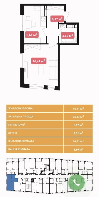 Житлова кімната — 16,41 м²