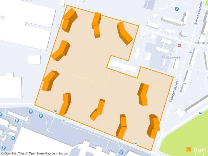 - розвинена інфраструктура, великий ландшафтний парк, наземний багаторівневий паркінг