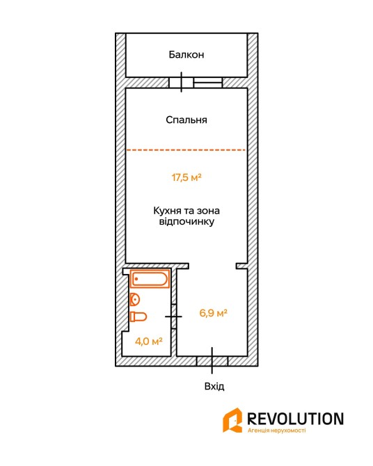 • Площа: 35,9 м2 (житлова 17,5 м2, кухня 5 м2)