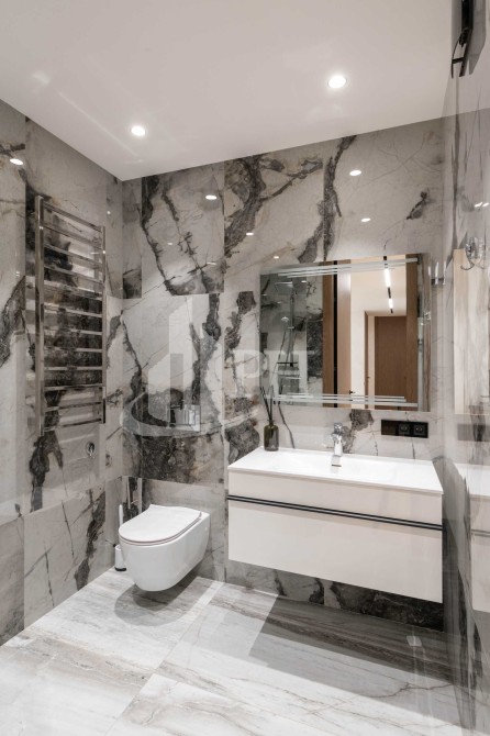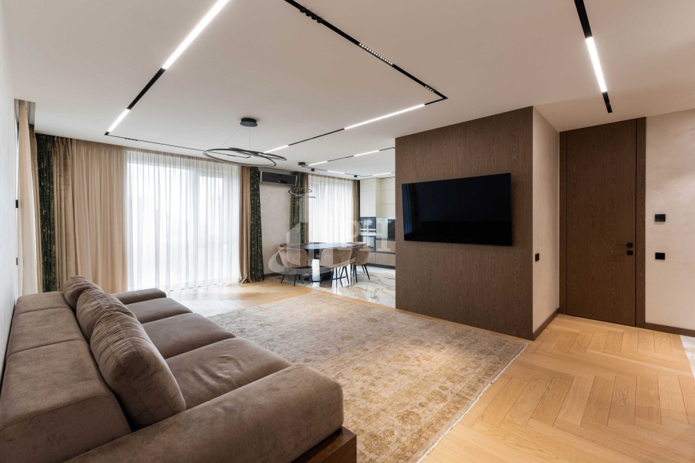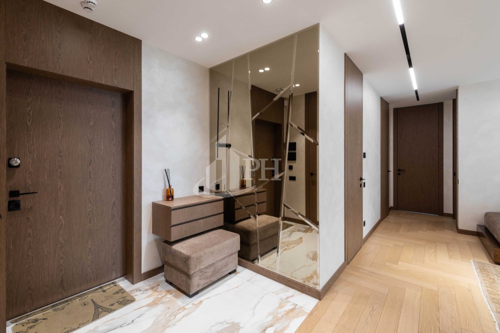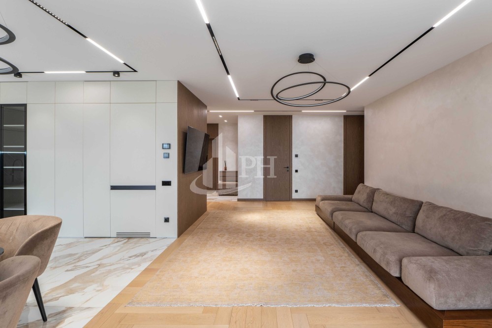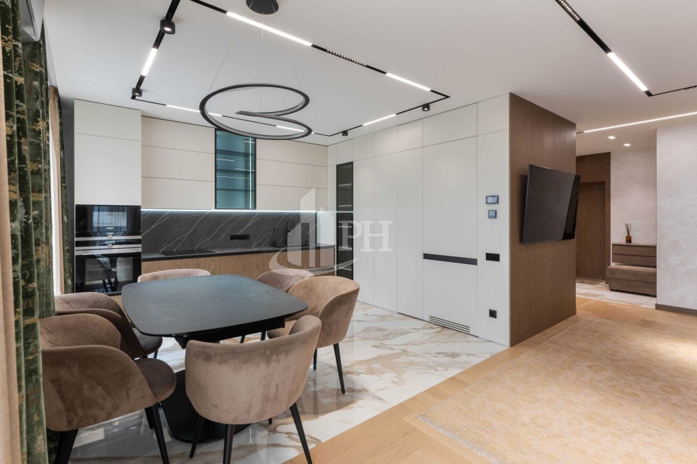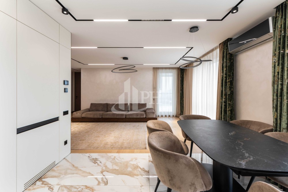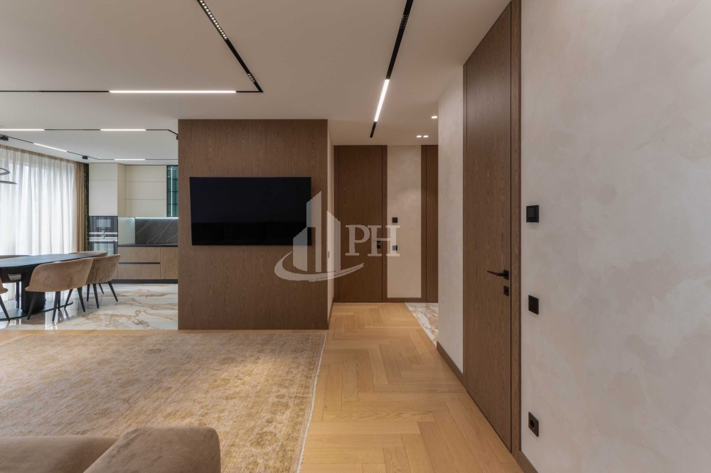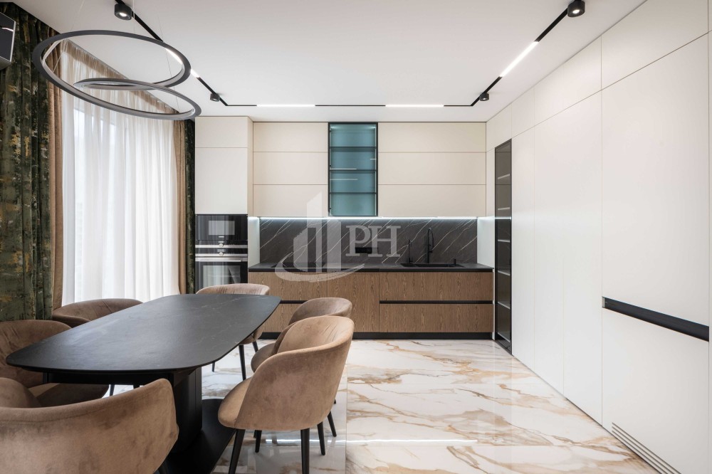 Квартира складається з просторої кухні-вітальні, обідньої зони, майстер-спальні, дитячої кімнати, двох ванних кімнат, двох гардеробних, передпокою та великого балкона з прекрасним видом на панораму міста.