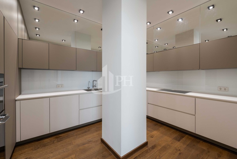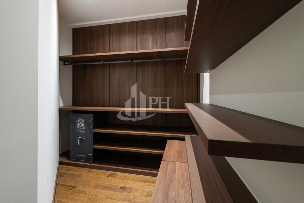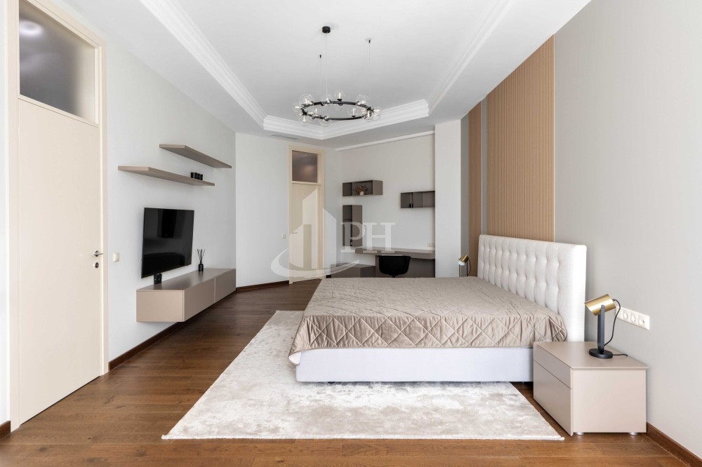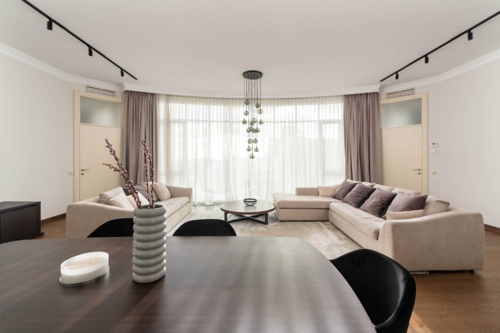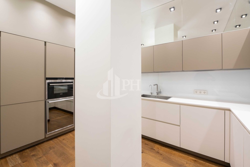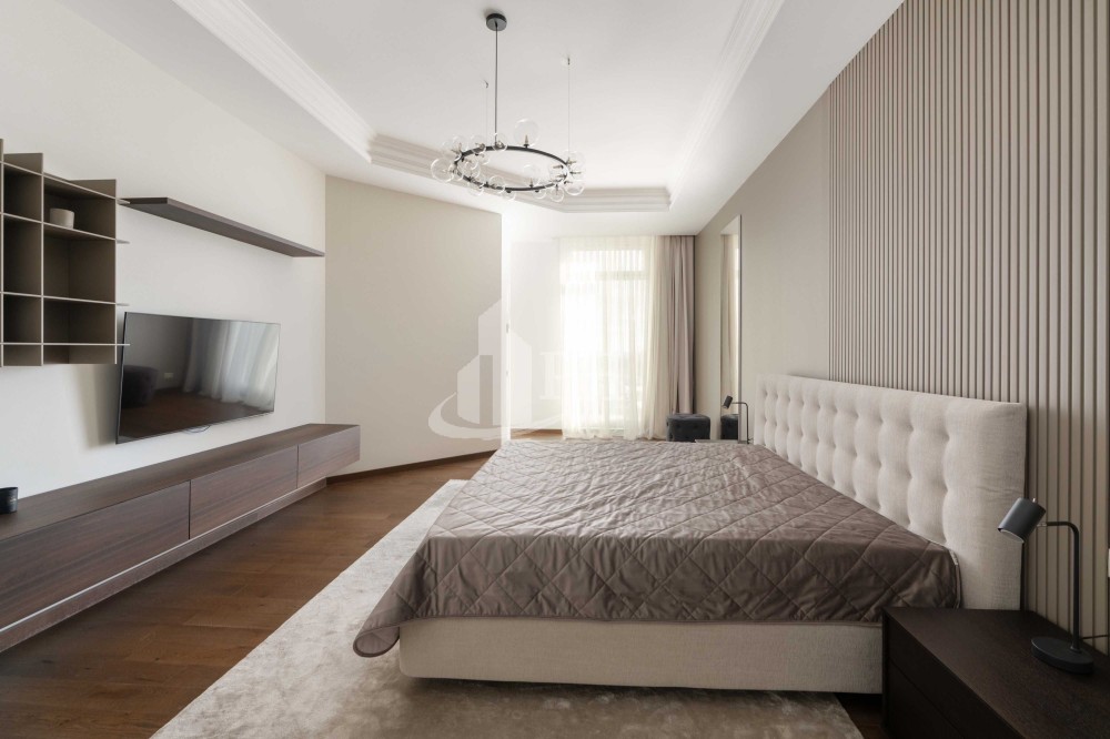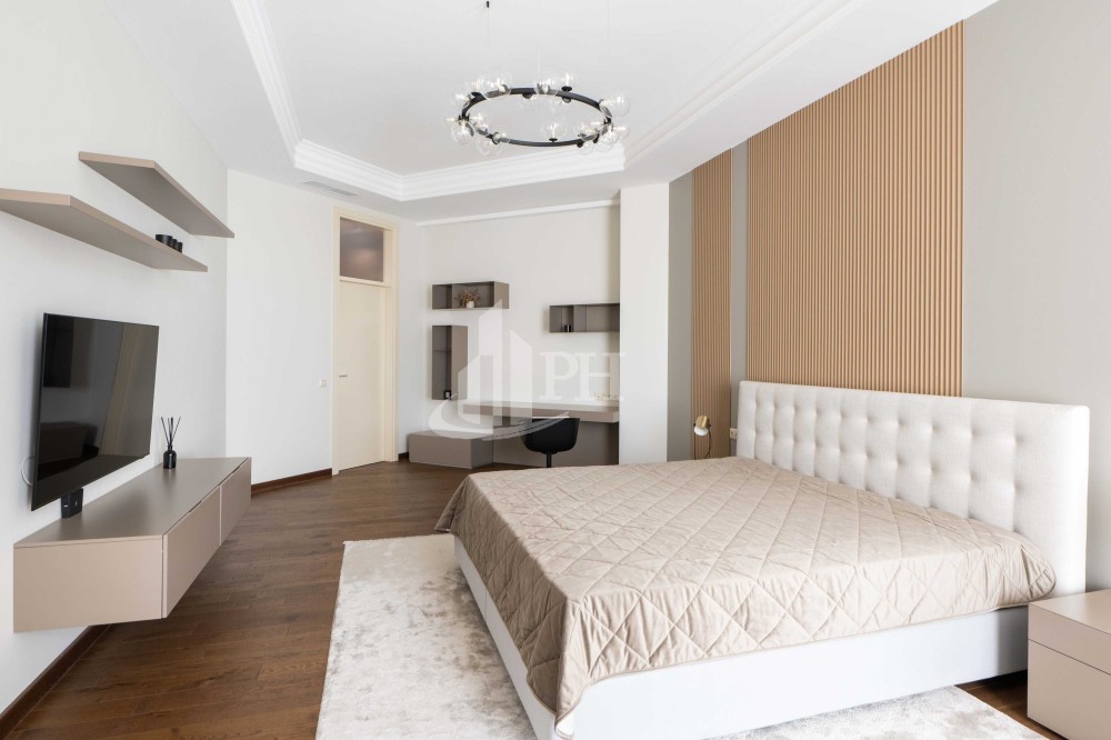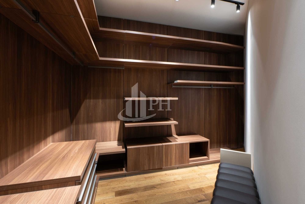 У квартирі зроблено ремонт за авторським проектом з використанням екологічно чистих матеріалів та якісної побутової техніки. В квартирі: вітальня, обідня зона, дві спальні, що мають власні гардеробні та ванні кімнати, гостьова вбиральня, гардеробна, пральня.