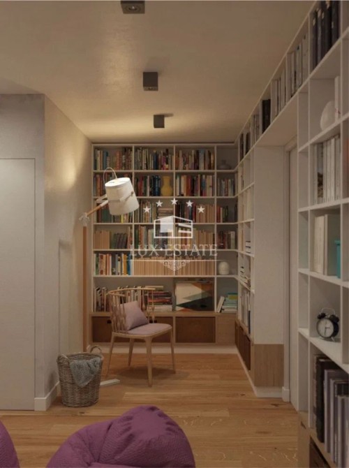 На втором уровне — две спальни, библиотека, гардеробная и ванная комната.