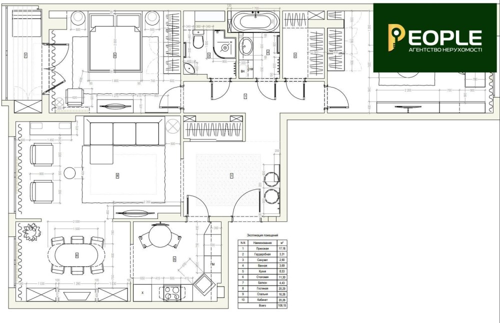 • Общая площадь 108 м2