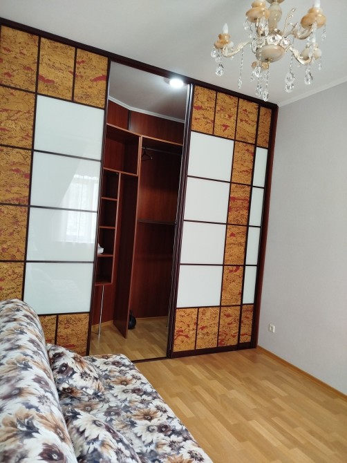 Квартира продається з усіма меблями: зручні дивани, великі шафи-купе, які допомагають підтримувати ідеальний порядок.