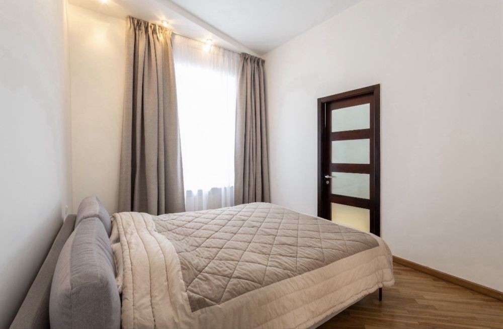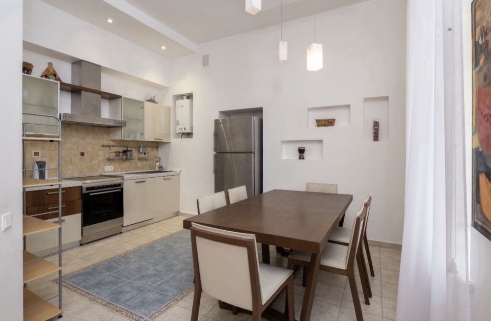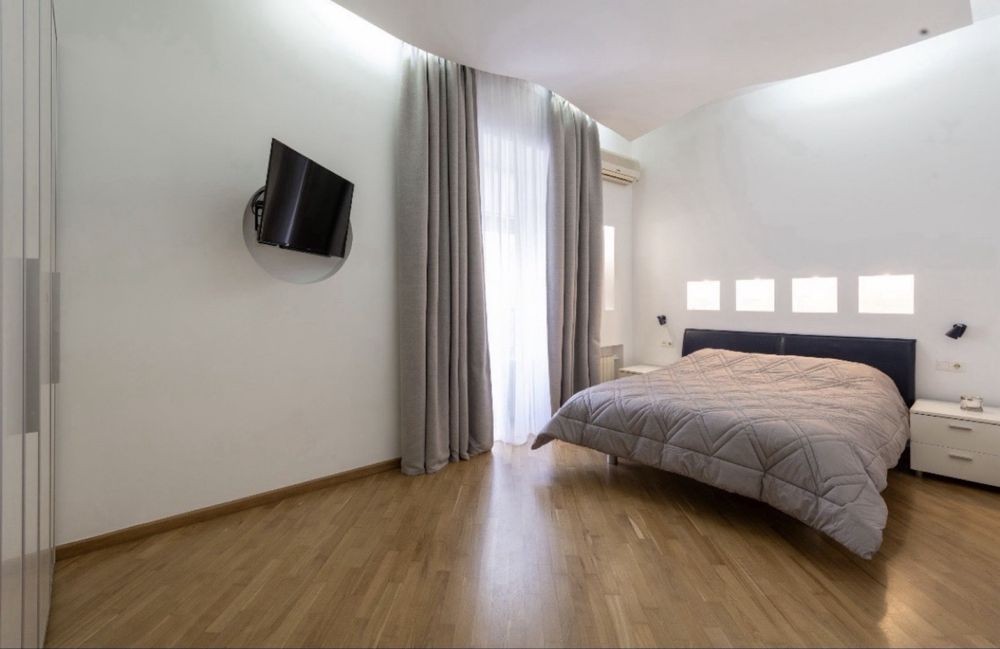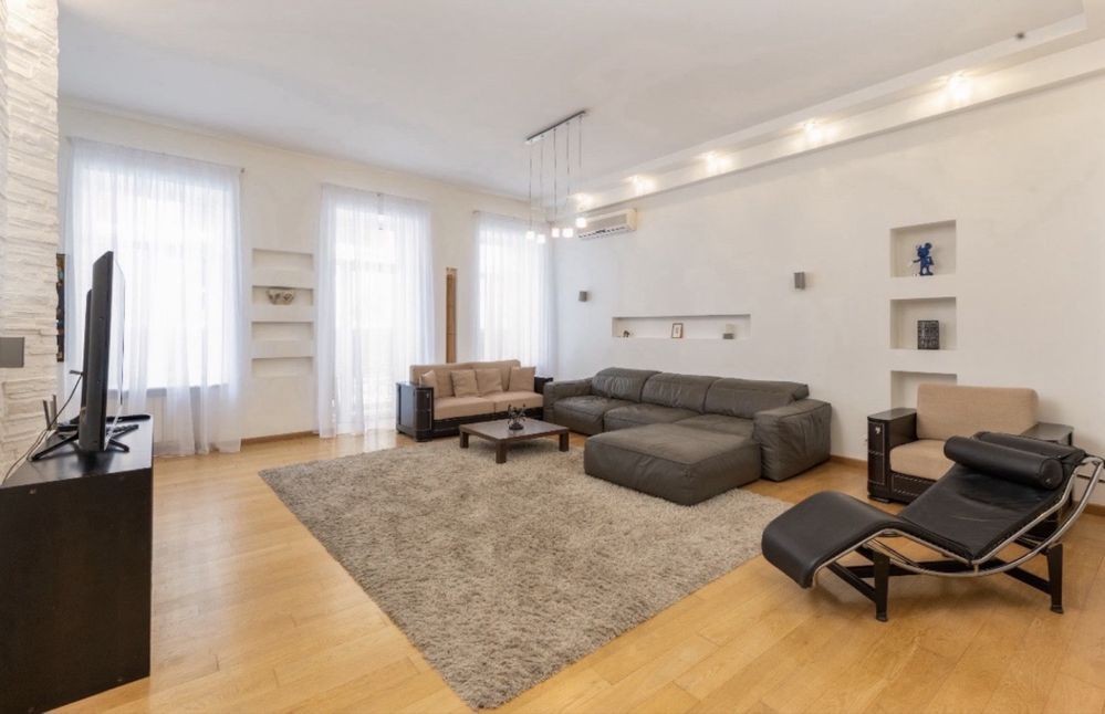 Виконано свіжий якісний ремонт. Високі стелі створюють відчуття простору, на підлозі — дубовий паркет. Квартира повністю укомплектована меблями та технікою: італійські меблі, німецька сантехніка.