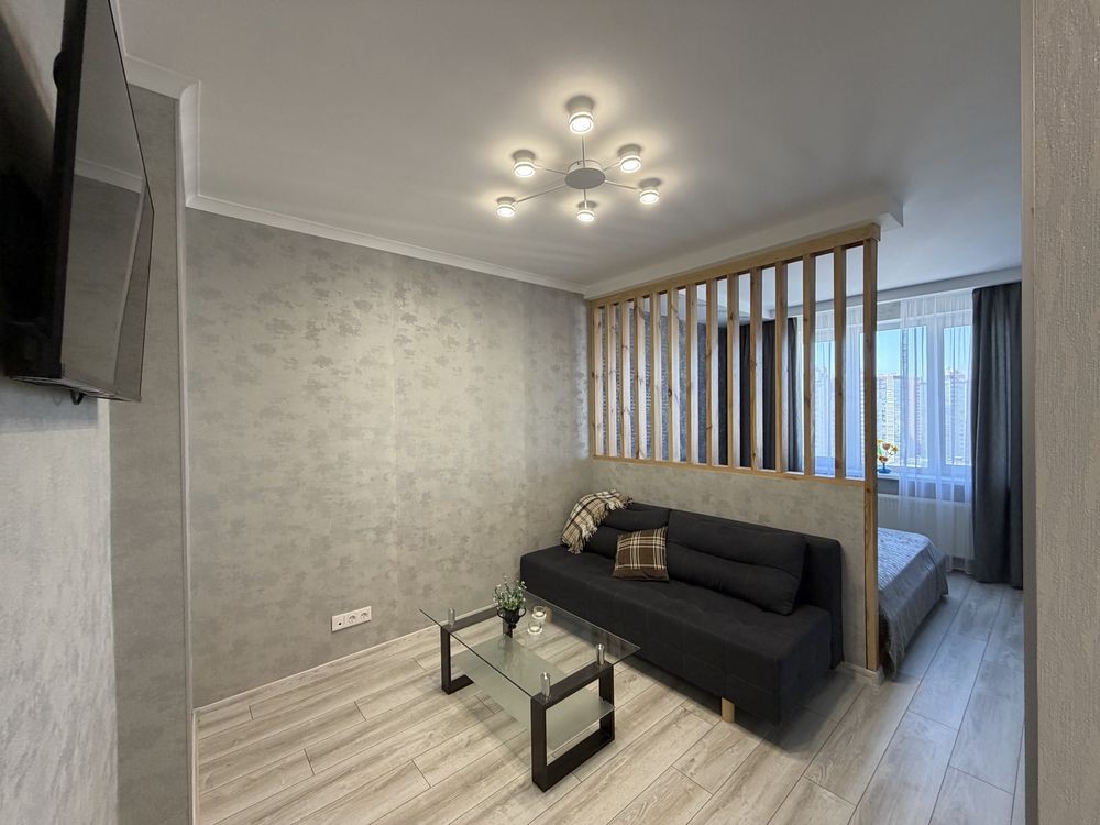 Пропонується в оренду сучасна 1-кімнатна квартира з новим ремонтом у Дарницькому районі, поруч з метро Позняки.