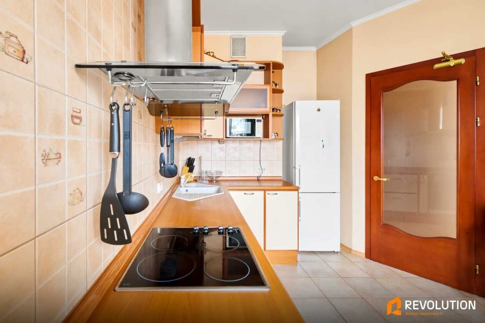 Квартира повністю укомплектована якісними меблями та побутовою технікою: двоспальне ліжко, шафи та гардеробна, великий розкладний диван, крісла, письмовий стіл, шкіряне крісло, пральна машина, бойлер, ванна та душова кабіна. Кухня оснащена вбудованою технікою — посудомийною машиною, холодильником, варильною поверхнею та духовою шафою. У кімнатах встановлені кондиціонери.