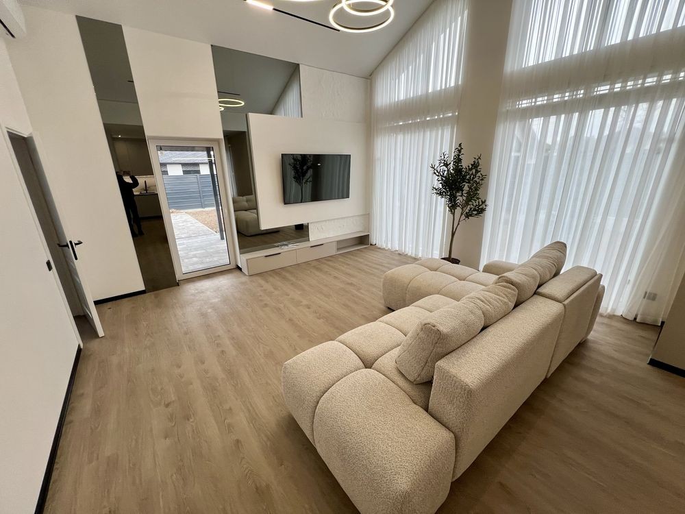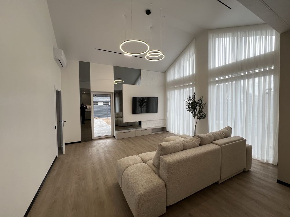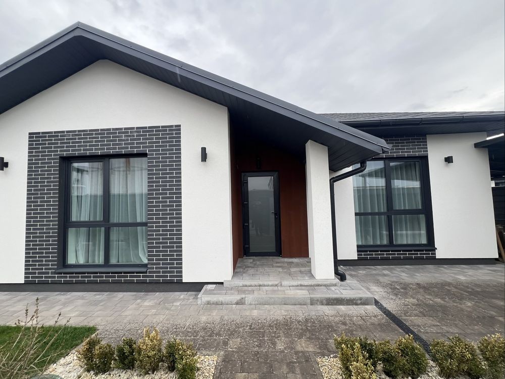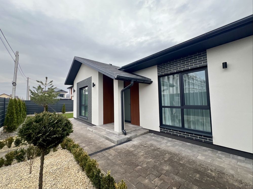 Пропонується до продажу сучасний одноповерховий будинок із якісним ремонтом та повним меблюванням у с. Гатне, в закритому котеджному містечку Казковий.