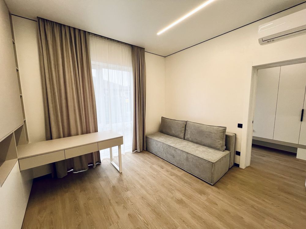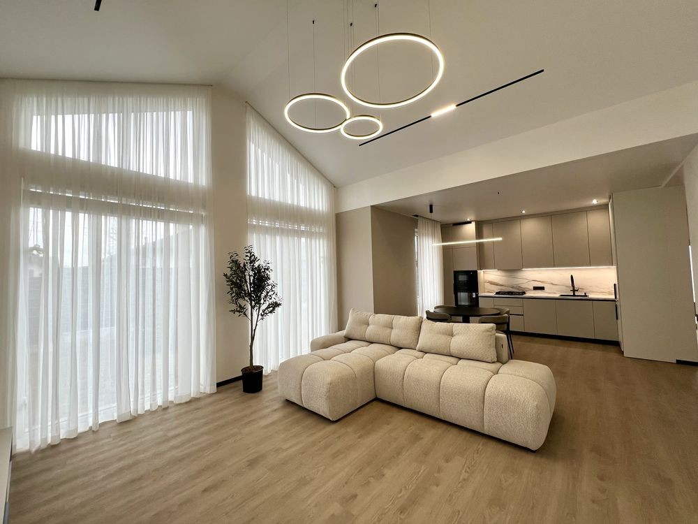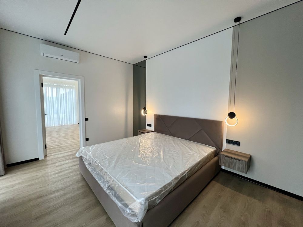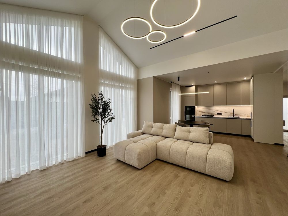 просторий передпокій із місцем під шафу-купе, світла кухня-вітальня, три окремі спальні (основна — з гардеробною та власним санвузлом), додатковий гостьовий санвузол, а також окрема котельня.