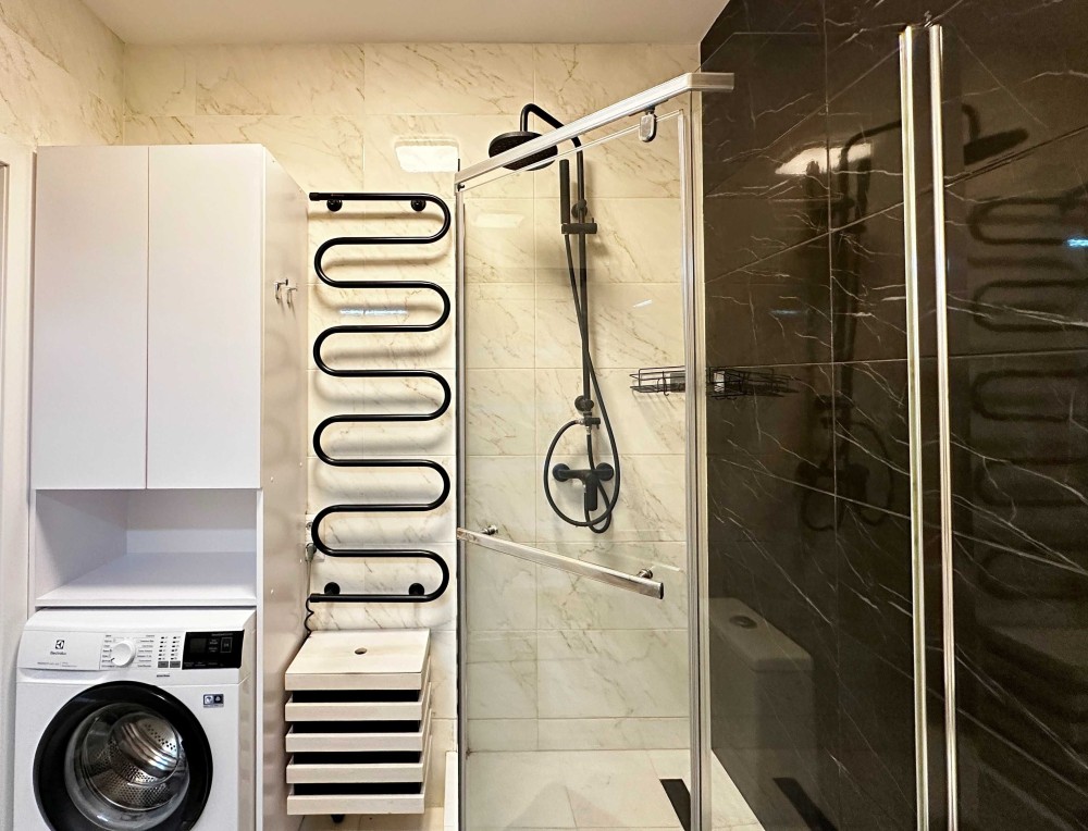 Повноцінний санвузол з сучасною сантехнікою.