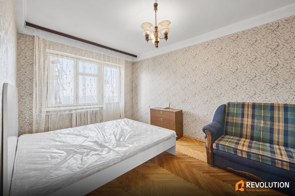 • У кімнаті паркет у гарному стані — після легкої реставрації виглядатиме дуже привабливо