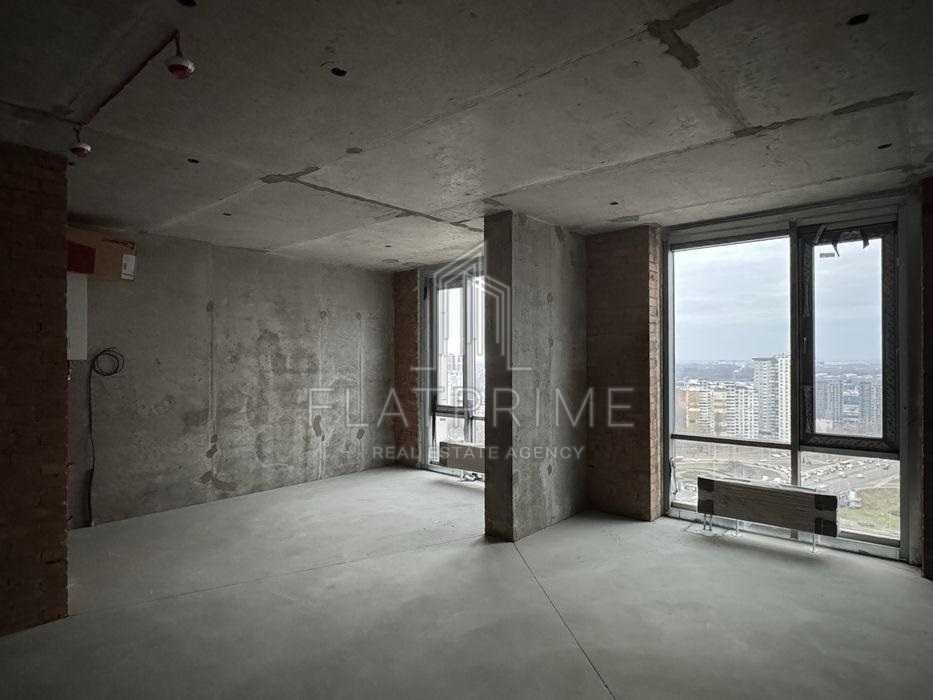 Квартира площею 40.2 м² розташована на 13 поверсі 34-поверхового будинку. Стан після будівельників: стяжка, штукатурка, встановлені лічильники на воду й електрику, індивідуальне електроопалення.