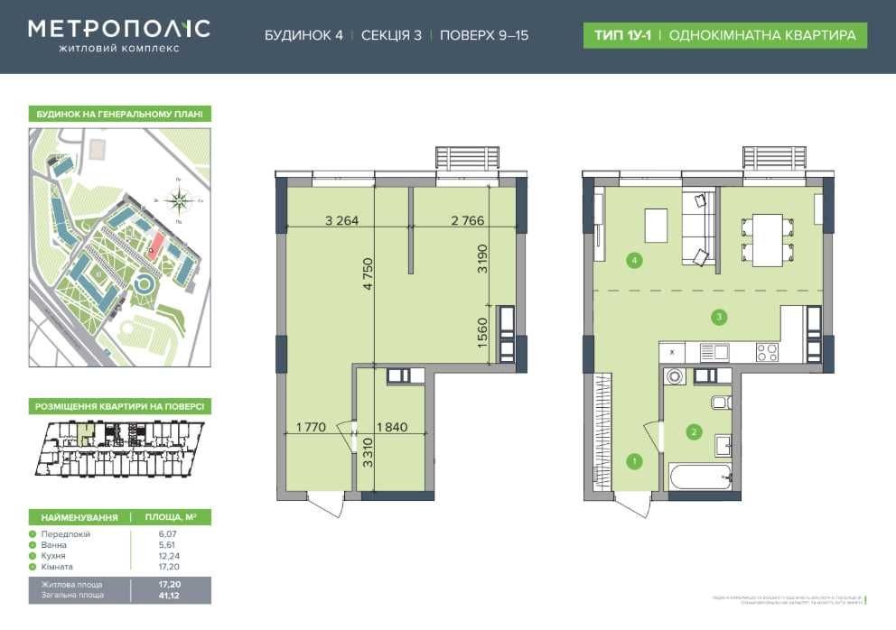 Продаж 1-к квартири в ЖК « Метрополіс »