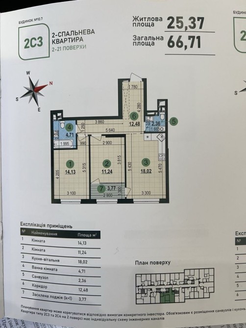 Площа 66,71 кв.м.