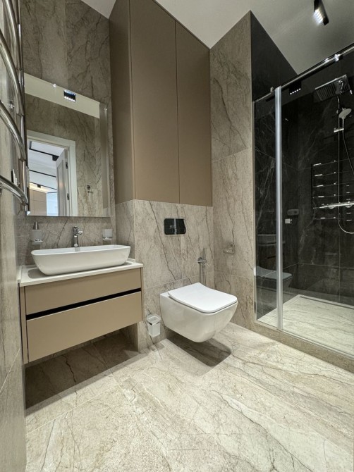 В квартире выполнен авторский ремонт в современном стиле с использованием натуральных материалов( ламинат, мрамор, гранит) и техники ведущих Европейских производителей премиум класса: