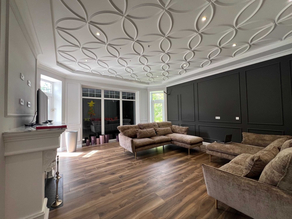 1 - поверх: кухня, столова, вітальня, гостьова спальня, гардеробна, гараж на 2 авто