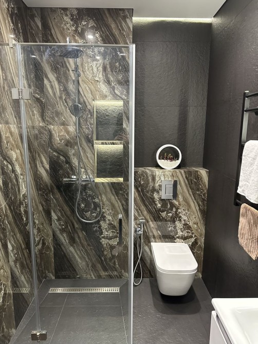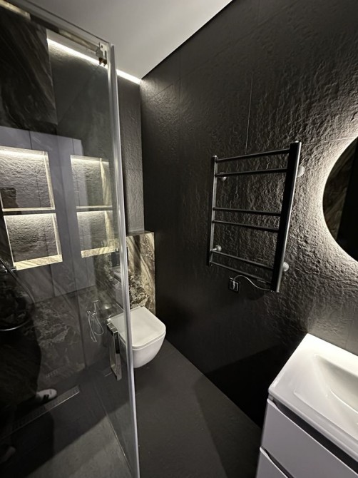 На стінах декоративна штукатурка та італійський керамограніт.