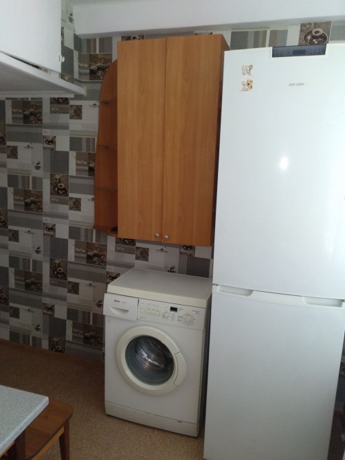 На кухні – меблі, холодильник, газова плита, пральна машина
