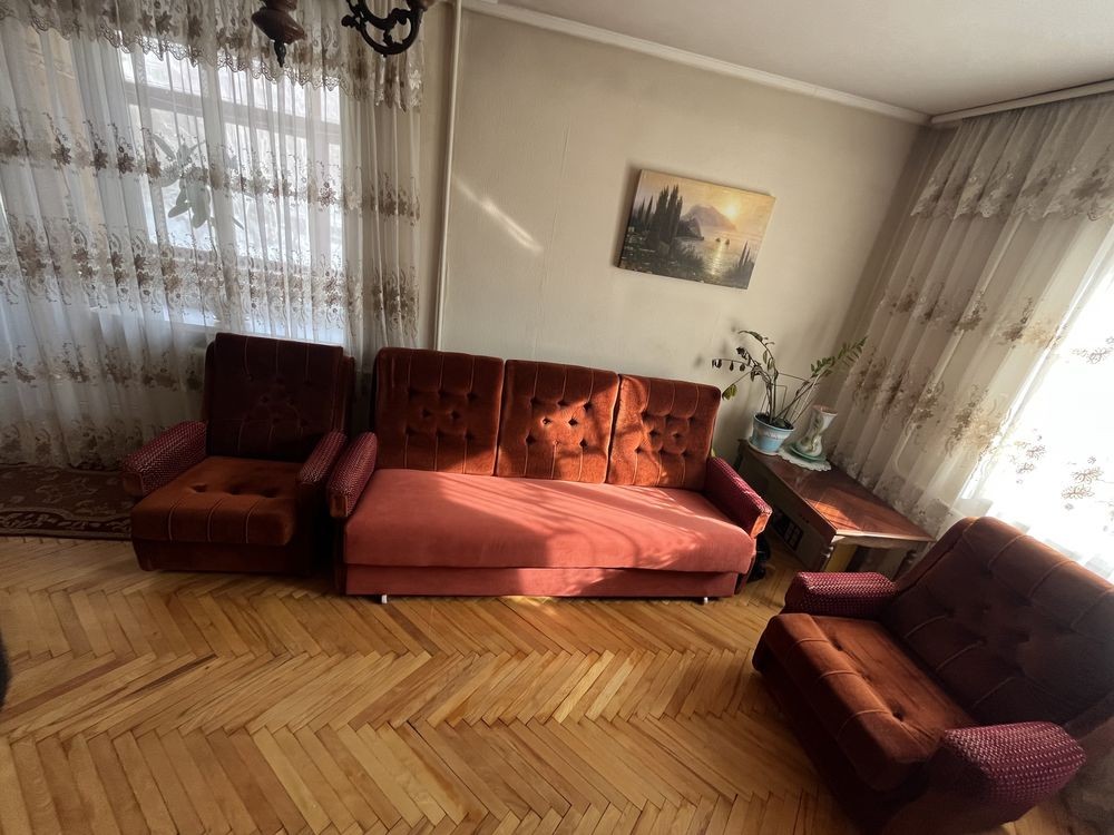 У вітальні: диван, крісла, вихід на